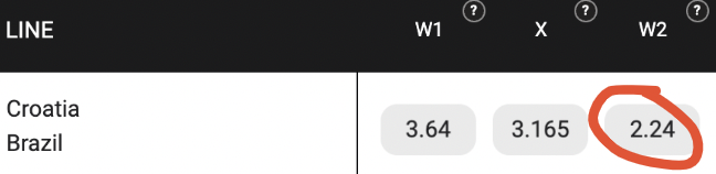 We'll make the first Tk.. 20 bet on Brazil football team winning. Let's say, we lost. Then we'll make the second bet on Portugal winning, but instead of Tk. 20, we'll bet Tk. 40 (double the amount). If this team wins, we will get Tk. 90 because the coefficient is 2.24. And the winning Tk. 90 not only pays off the previous losing bet but also brings profit.